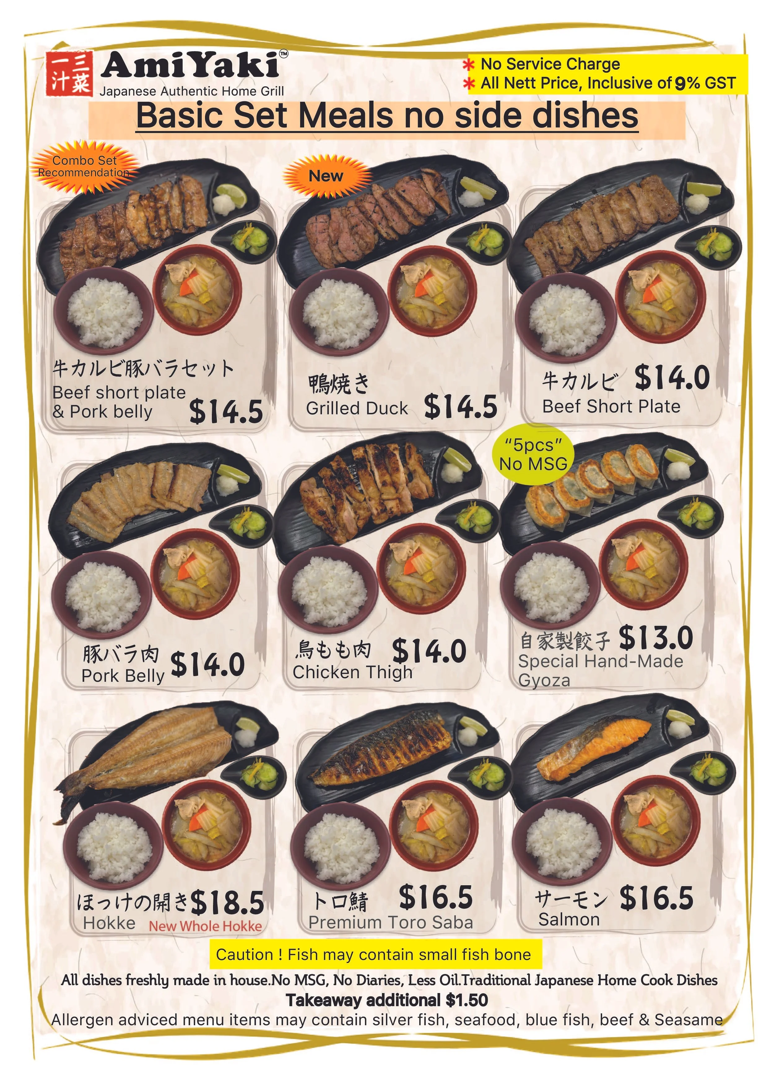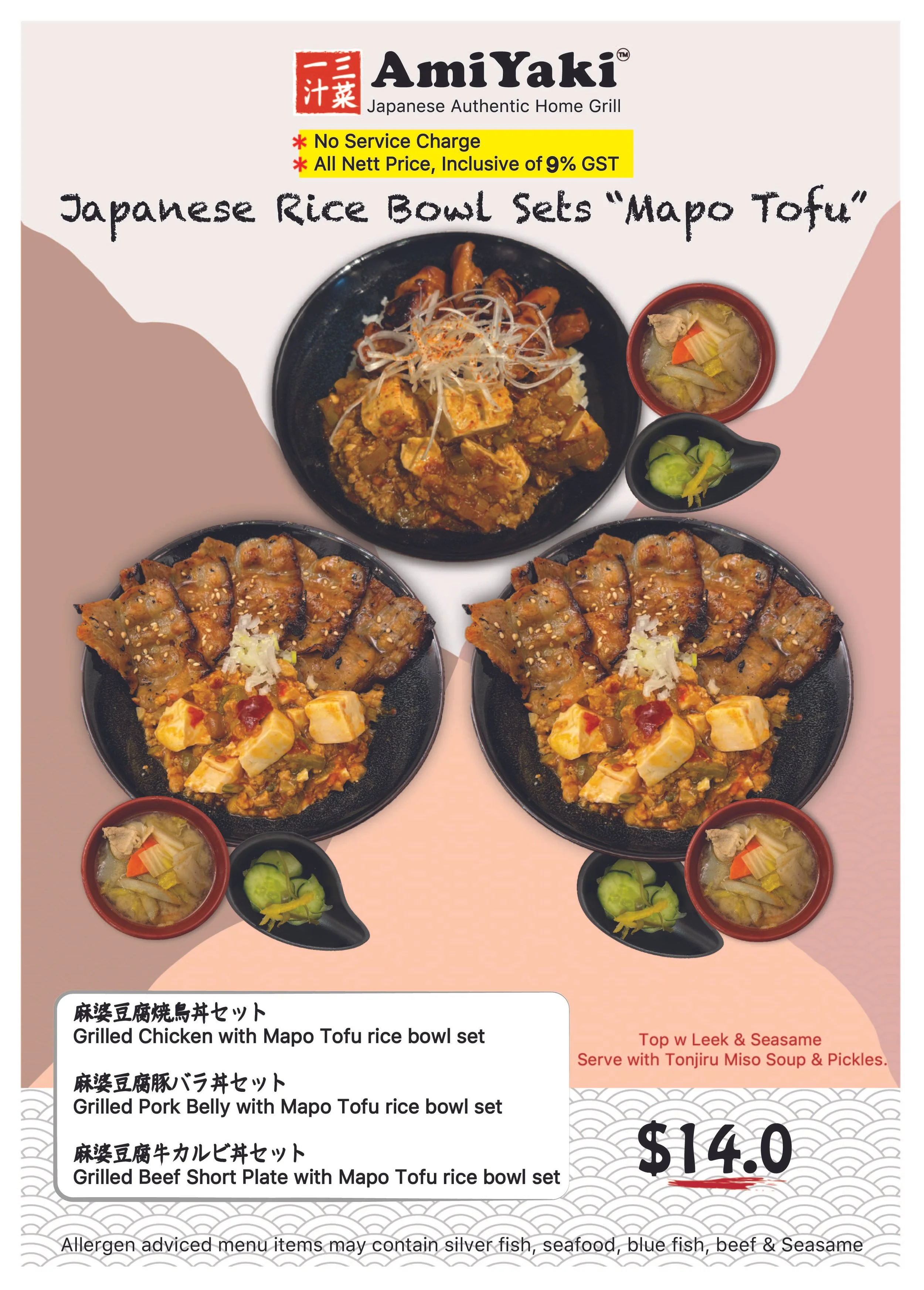Dive into our Combo Complete set, featuring savory beef short plate and succulent pork belly, paired with our traditional Japanese Tonjiru miso soup. Plus, customize your experience by choosing a side dish: opt for mapo tofu, chikuzenni, hijiki with mushrooms, or classic potato salad.